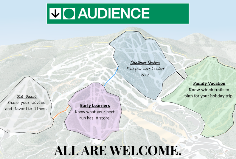I thought about different types of skiers and how they would use the app, from family vacation goers to seasoned experts looking to share their knowledge with the next generation.